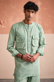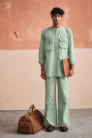 MOHAIR LINEN NEHRU JACKET SET- OLIVE ( SET OF 3)