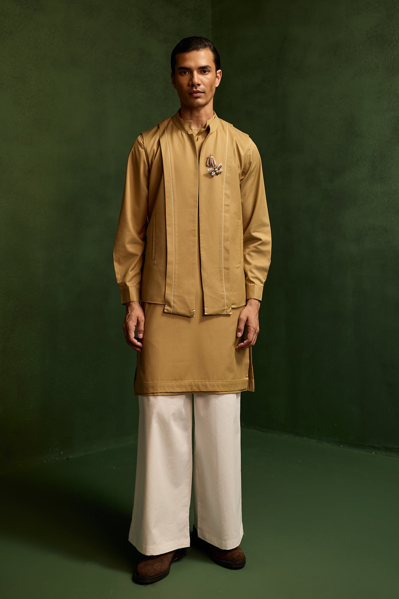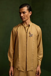 SAMAY DRAPE JACKET SET- KHAKHI ( SET OF 3)