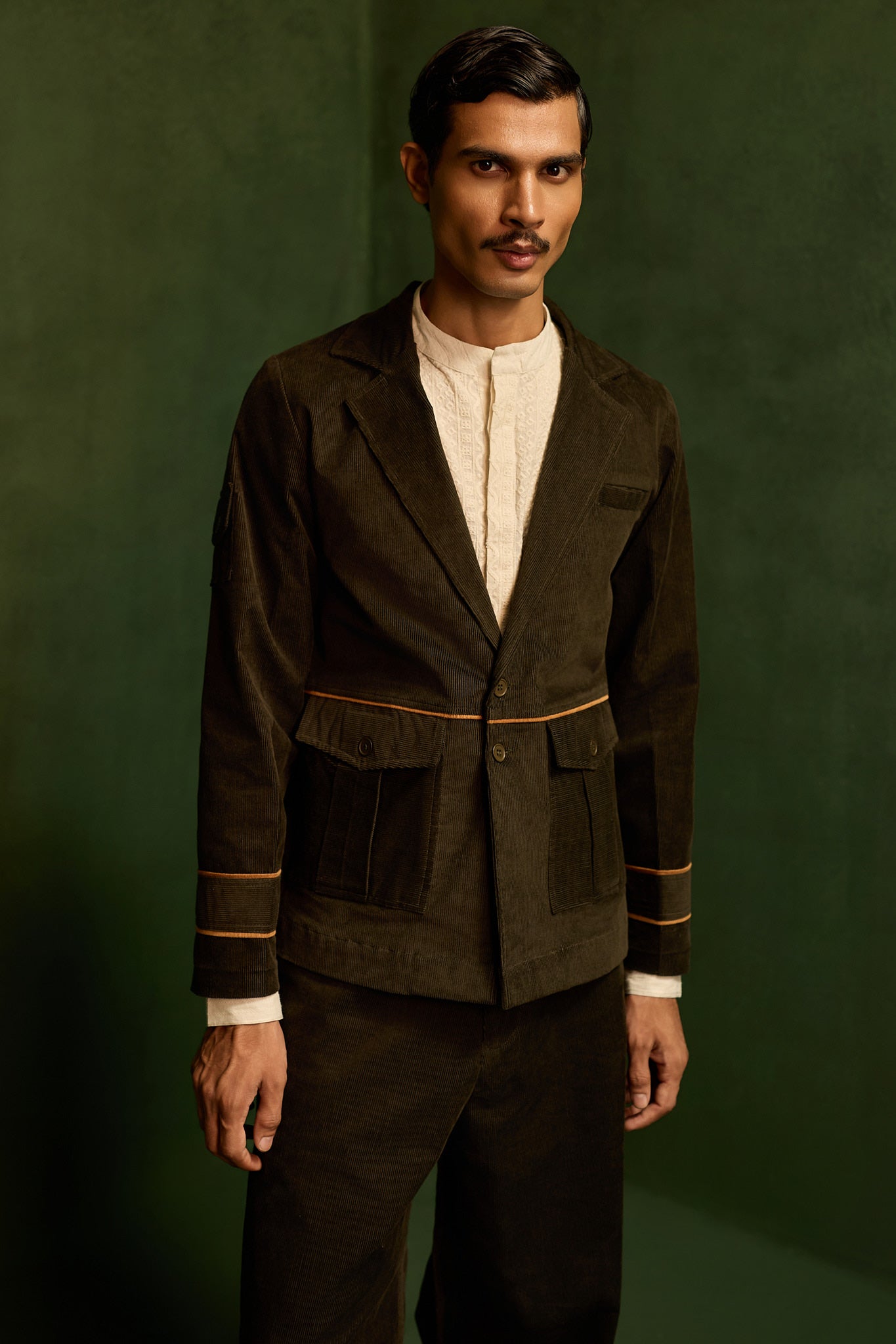 CORDUROY HUNTER JACKET SET-OLIVE ( Set Of 2)