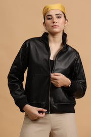 Classic Bomber Leather Jacket- Black