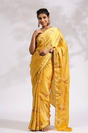 Mustard Bouquet-Silk Satin Saree