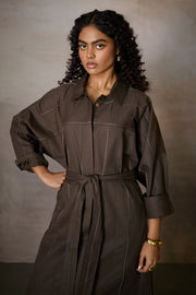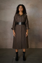 PINTUCK SHIRT DRESS- NOMAD OLIVE