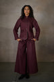 Our Merlot Blazer Set blends a sharply structured bandgala style coat with super wide-legged, skirt-like flowy pants. Tailored to perfection and crafted for the women of today, it carries a refined, contemporary confidence. Perfect for evening cocktails or a formal event, it’s a statement in modern elegance.