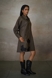 PINTUCK SHIRT DRESS- NOMAD OLIVE
