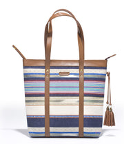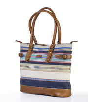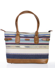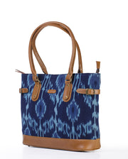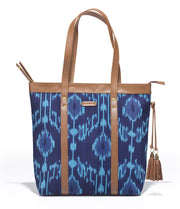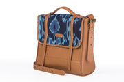 BLUE LEATHER SATCHEL- IKAT IMRINTS